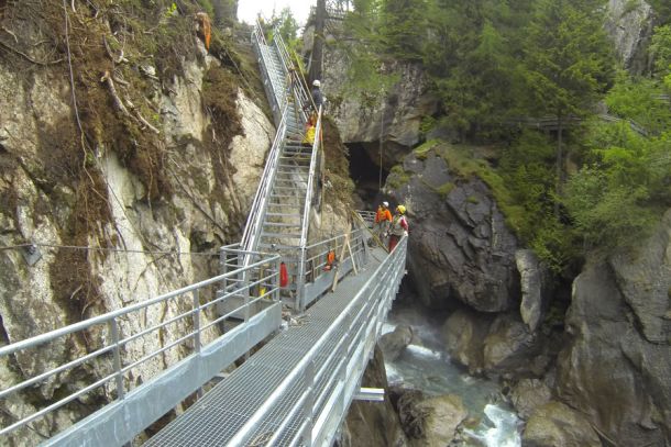 - Grotte de la Mer de Glace (Massif du Mont-Blanc) : réalisation d’une passerelle.